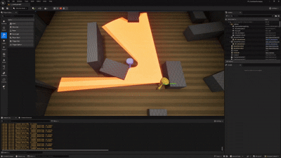 For this we also needed to have a working vision cone *again*... The first one was made in Unity, the second one was using a payed plug-in we weren't able to use in the end. So the third, and hopefully final one is a UE5 version of our Unity vision cone, remade through blueprints!