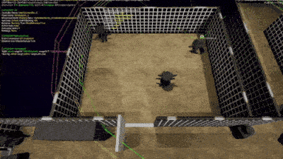 Even though its not really visible (damn you 3MB file limit) switching animation states are also implemented for the AI! As well for deepened behaviour systems (f.e. looking at the player like its shown right now)